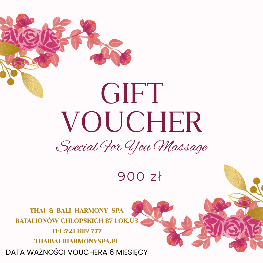 Voucher kwotowy do Thai & Bali Harmony Spa to doskonały sposób, by obdarować kogoś wyjątkowym doświadczeniem, które przeniesie go w egzotyczny świat spokoju i odnowy.
